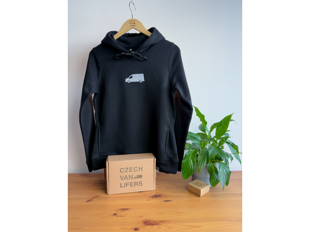 Dámská mikina s kapucí dostupná ve dvou barvách - černá a šedá. Vyrobená z organické bavlny.