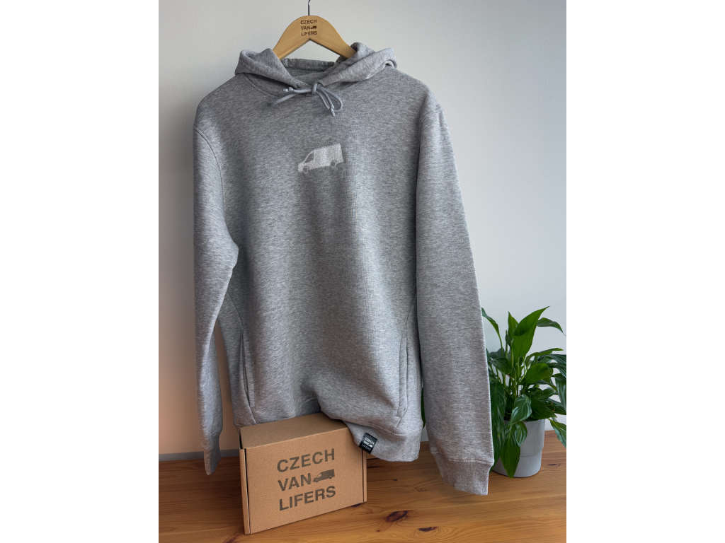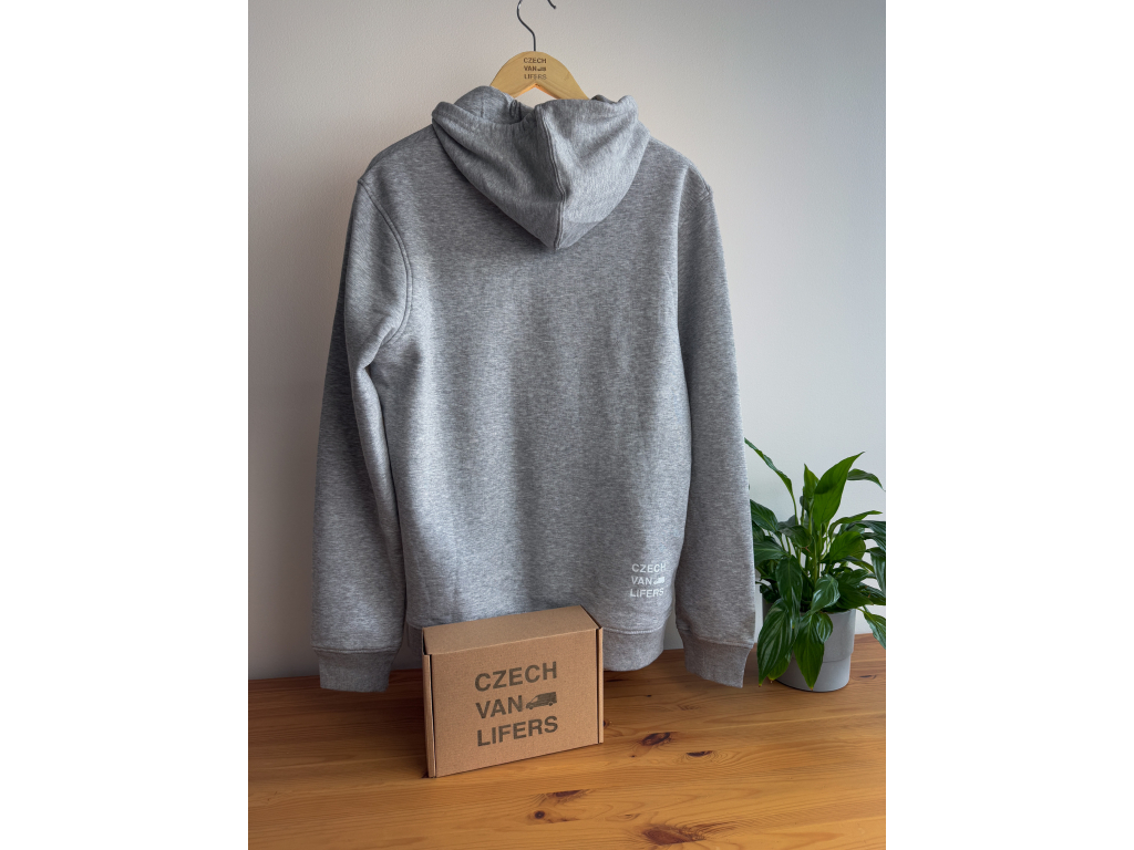 Pánská mikina s kapucí dostupná ve dvou barvách - šedá, černá. Vyrobená z organické bavlny.